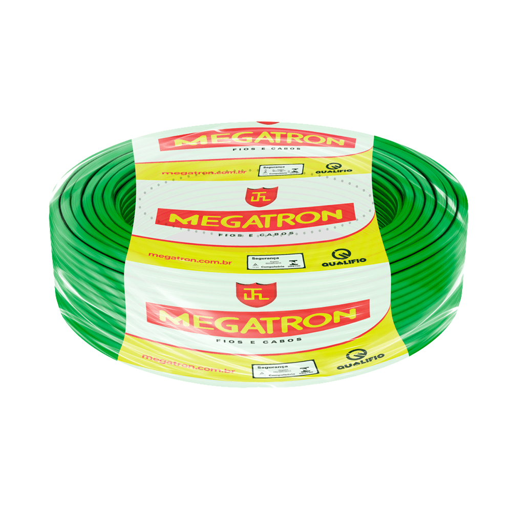Economia de R$ 29,08O Cabo Flexível da Megatron é um condutor de 1,5mm² na cor Verde, bitola padrão para circuitos de iluminação e obrigatória para uso como condutor de proteção (terra - PE). Fabricado com condutor de cobre nu, têmpera mole, Classe 4, e isolação em PVC 70°C anti-chama, este cabo de 750V assegura durabilidade e segurança na proteção. É comercializado em rolos de 100 metros, segue a norma NBR NM 247-3 e possui certificação INMETRO.