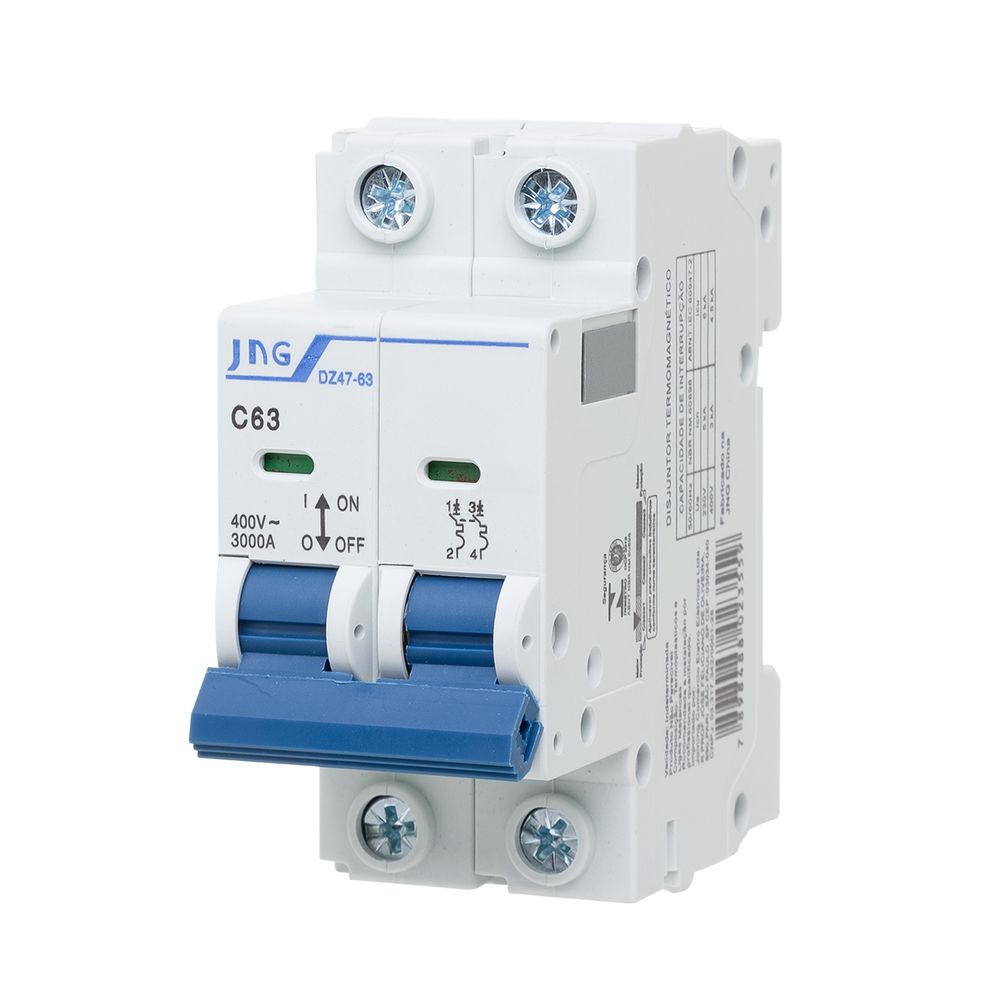Utilize este disjuntor Bipolar 63A para: Disjuntor Geral do Quadro de Distribuição, Circuitos de Força e proteção de ramais de alimentação de alta demanda em 220V.
