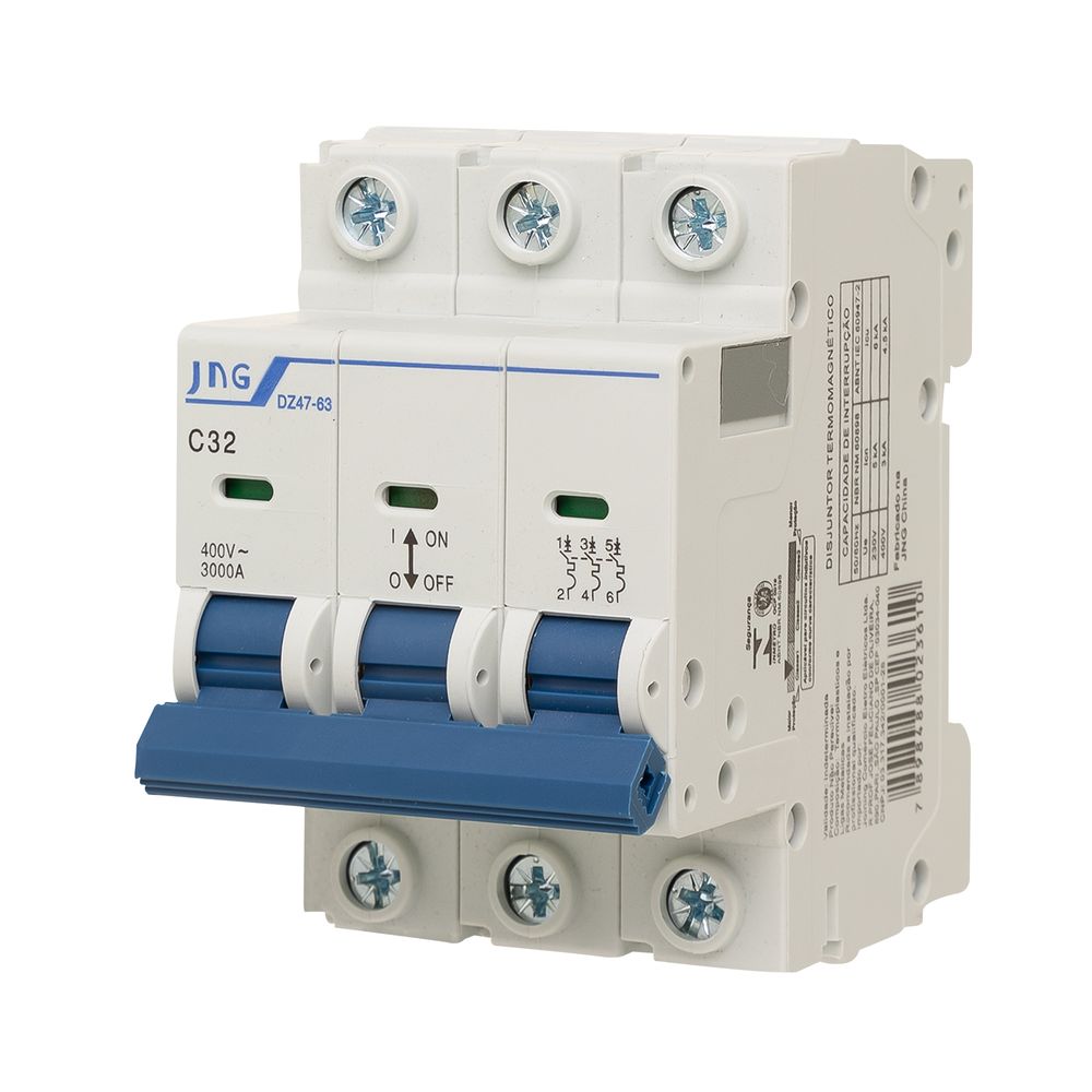 Utilize este disjuntor Tripolar 32A para: Motores Trifásicos de Alta Potência, Circuitos de Força Pesada e ramais de sub-distribuição de alta demanda.