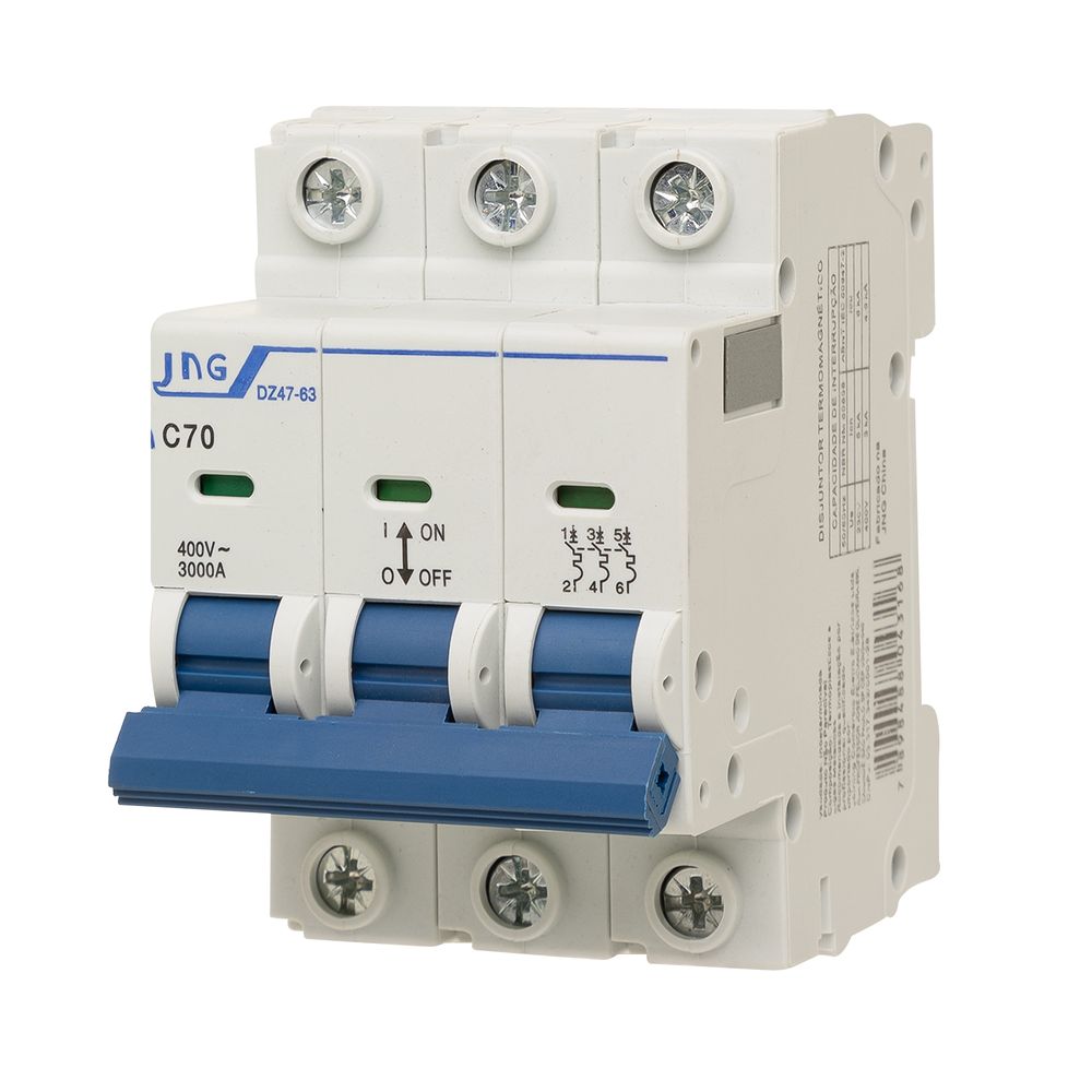 Economia de R$ 11,50O Disjuntor Tripolar da JNG é um dispositivo de proteção de alta capacidade com corrente nominal de 70 Amperes (70A). Projetado para montagem em trilho DIN (Padrão 3P), ele possui a característica de disparo em Curva C, sendo ideal para uso como disjuntor geral de alto consumo ou para a proteção de alimentação de painéis de distribuição em sistemas trifásicos. Com uma capacidade de interrupção de 3kA (3000 Amperes), este minidisjuntor garante a segurança da sua instalação contra sobrecargas e curto-circuitos.
