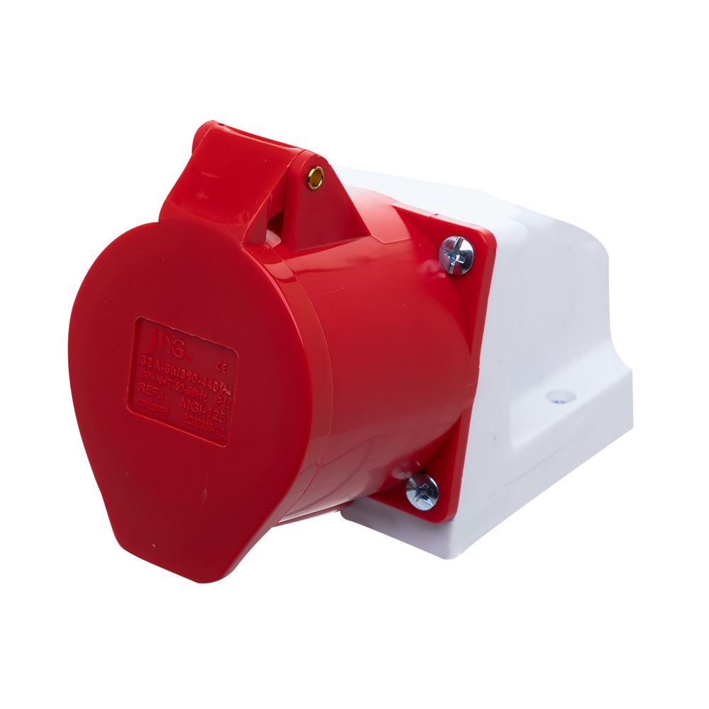 Economia de R$ 9,11A Tomada Industrial de Sobrepor 3P+T+N (Três Polos + Terra + Neutro) da JNG é a solução mais completa para sistemas trifásicos de alta tensão e alta corrente. Com capacidade de 32 Amperes (32A) e tensão de operação de 380V, esta tomada é crucial para a alimentação de máquinas que requerem as três fases mais o neutro. A cor vermelha e a especificação 380V indicam o padrão de alta tensão conforme a norma IEC 60309, sendo o padrão para sistemas de 380-415V. É extremamente robusta e possui alto grau de proteção (IP44 ou superior).
