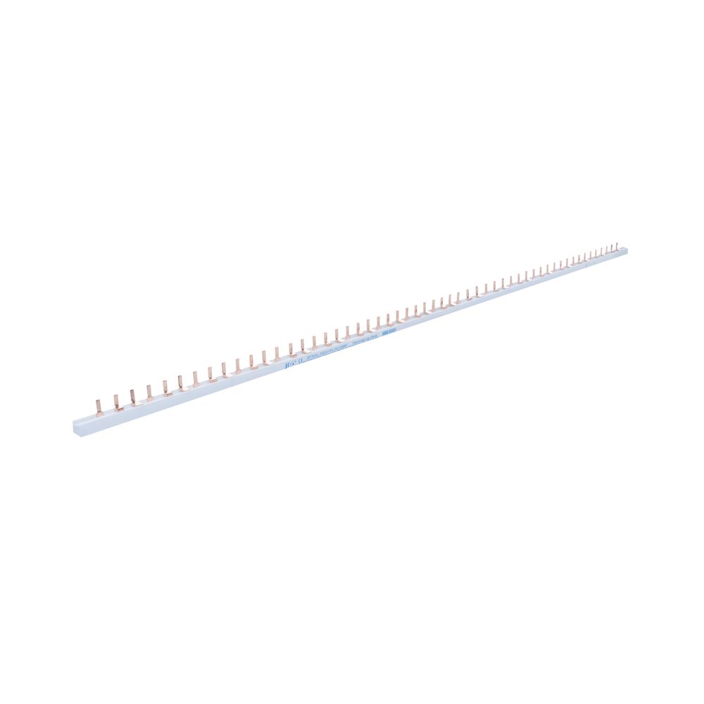 Economia de R$ 29,79O Barramento Pente Trifásico JNG de **1 metro** de comprimento (nominal) e 54 Polos é o componente definitivo para a distribuição de energia em grandes painéis e quadros de distribuição trifásicos. Com capacidade de corrente de 63A, esta barra permite a alimentação de dezenas de disjuntores com uma única peça, garantindo segurança, uniformidade no contato elétrico e extrema organização. Por ser fornecido em **1 metro** de extensão, o eletricista tem a liberdade de cortar o barramento no tamanho exato necessário, otimizando o uso em quadros de alta densidade de disjuntores.