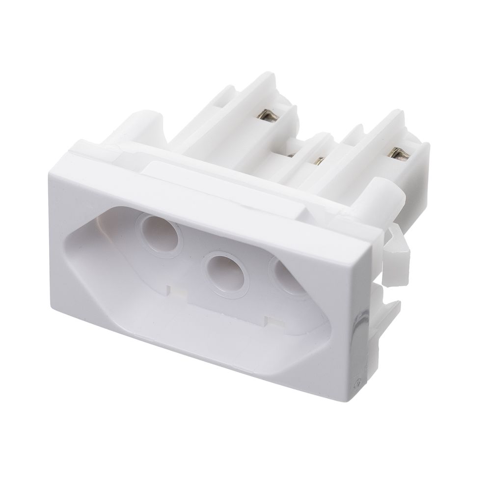 Economia de R$ 1,64A Tomada 2P+T (Dois Polos + Terra) de 20 Amperes (20A) na cor branca é parte da linha Módulo Pro da Alumbra, oferecendo uma solução robusta e versátil para equipamentos de alta potência. Sua natureza modular permite que seja facilmente combinada em placas personalizadas, garantindo que pontos de alta carga (20A) possam ser instalados ao lado de outros módulos (interruptores, conectores) de forma prática. É fabricada com materiais resistentes, prevenindo o risco de curto-circuito e superaquecimento.