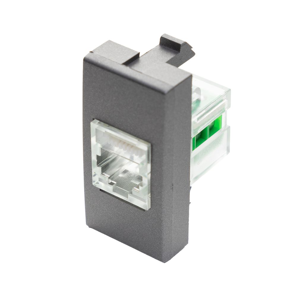 Economia de R$ 3,48A Tomada RJ11 de 4 Vias (4V) da linha Inova Pro Class da Alumbra é a solução premium para a conectividade de telefonia. O sofisticado acabamento na cor grafite confere um toque moderno e minimalista ao ambiente, sendo ideal para projetos de design de interiores de alto nível. Este módulo garante a conexão estável e organizada da linha telefônica, com a estética superior e a qualidade construtiva da linha Inova Pro Class.