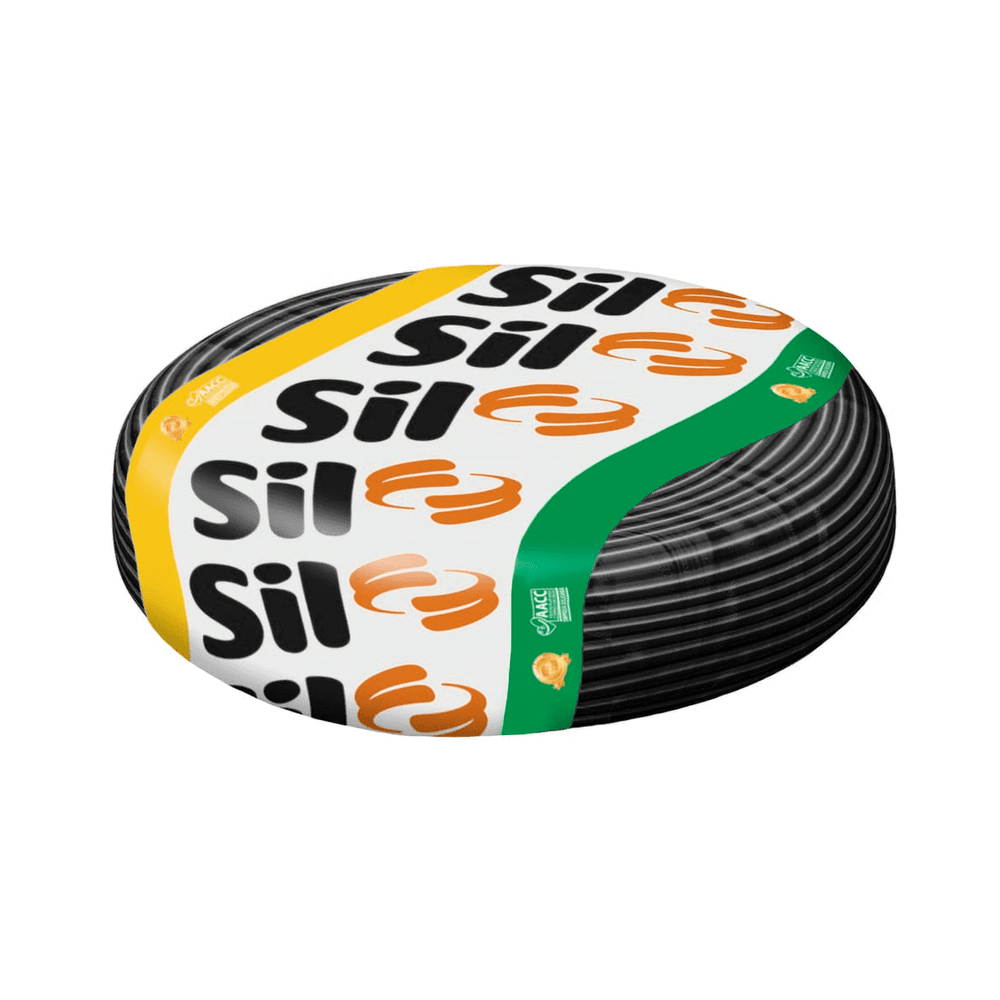 Economia de R$ 29,84O Cabo Flexível da Sil é um condutor de 1,5mm² na cor Preta, bitola padrão para circuitos de iluminação e ideal para uso como fio de fase. Fabricado com condutor de cobre nu, têmpera mole, Classe 4, e isolação em PVC 70°C anti-chama, este cabo de 750V assegura durabilidade e alta performance. É comercializado em rolos de 100 metros, segue a norma NBR NM 247-3 e possui certificação INMETRO.