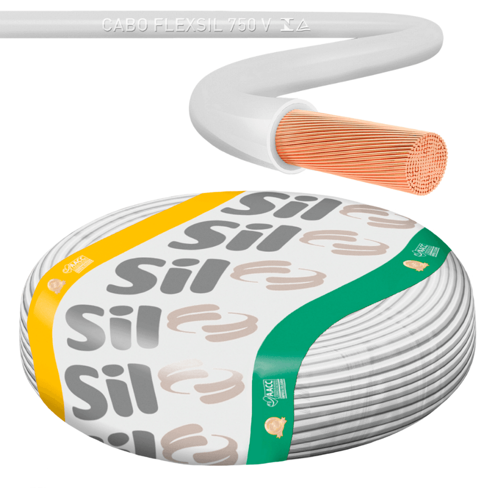 Economia de R$ 77,84O Cabo Flexível da Sil é um condutor de 4mm² na cor Branca, perfeito para ser usado como fio de fase ou retorno em circuitos de média potência. Este cabo de 750V tem condutor de cobre nu, têmpera mole, Classe 4, e isolação em PVC 70°C anti-chama. O rolo de 100 metros é certificado pelo INMETRO e atende à norma NBR NM 247-3, garantindo que as instalações de maior consumo sejam feitas com segurança e material de primeira linha.