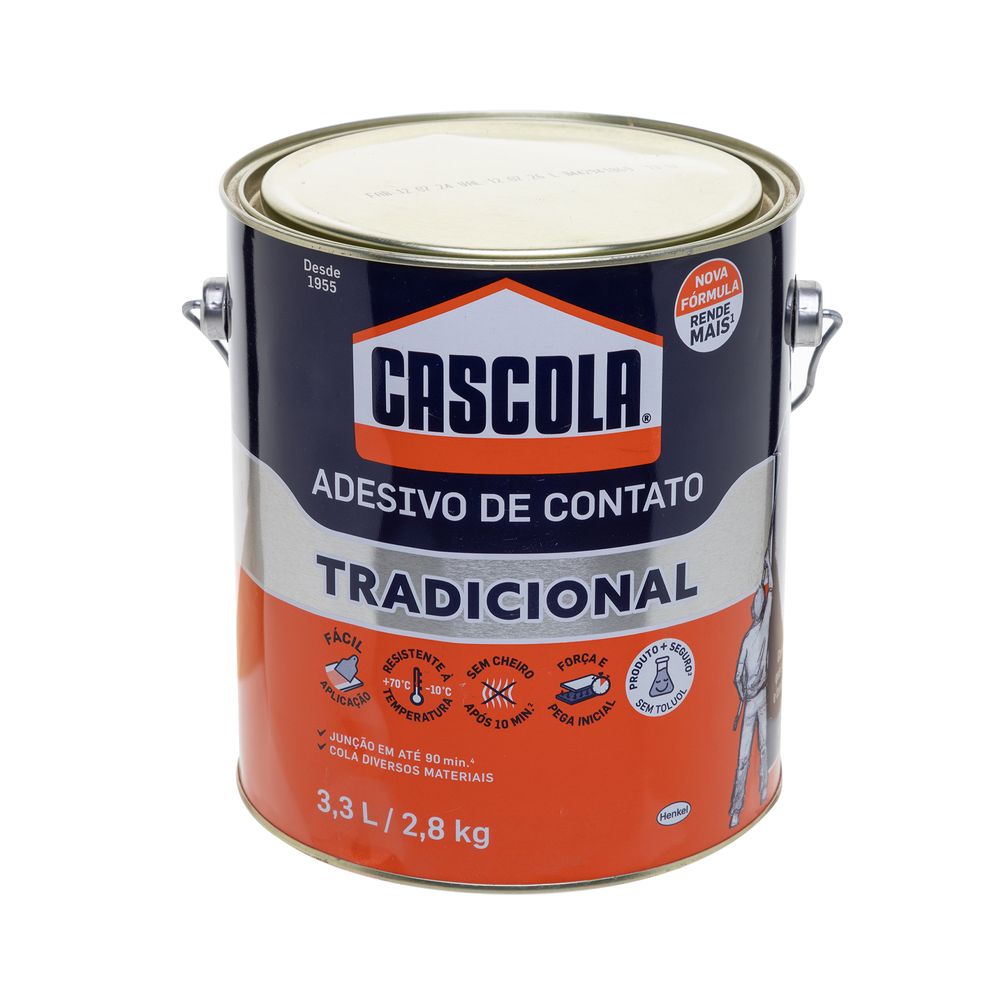 Economia de R$ 27,36A Cola de Contato Cascola GL 2,8kg é indicada para colagens exigentes em marcenarias e indústrias moveleiras. Possui alta resistência e desempenho, permitindo aplicação em laminados, MDF, borracha, couro e madeira com resultado profissional e durável.