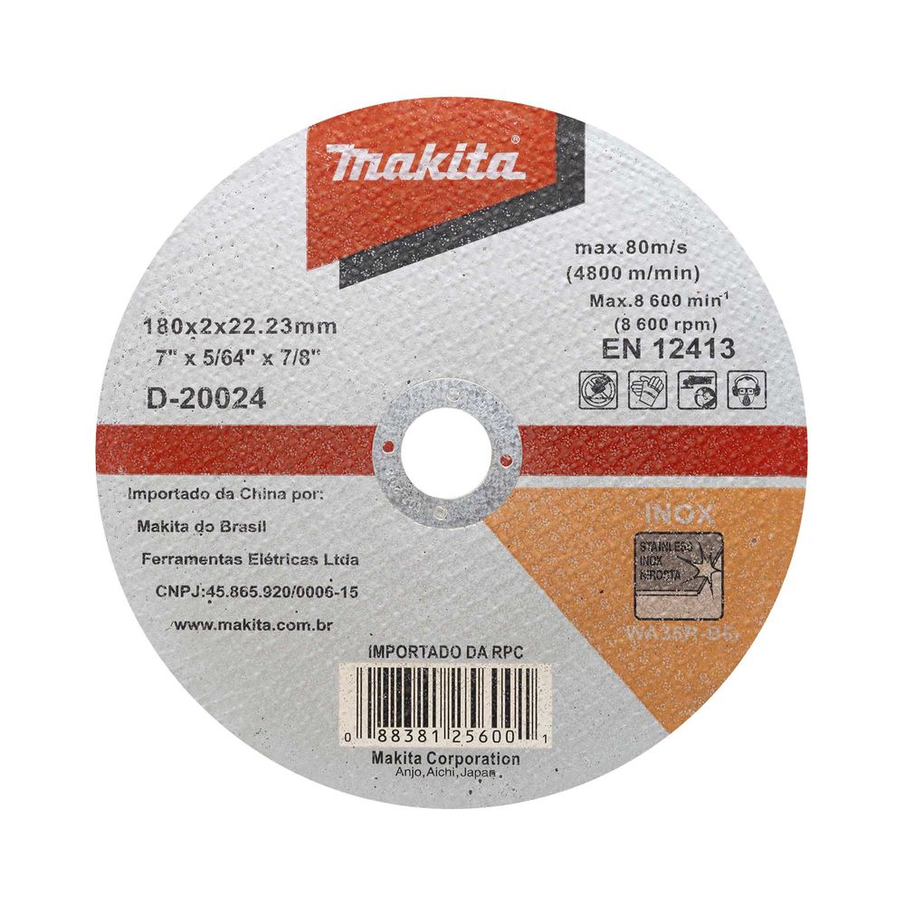 Economia de R$ 3,36O Disco Abrasivo de Corte Makita p/ Inox 7 Pol (180 x 2,00mm) é um disco abrasivo de alta qualidade, ideal para cortes em aço inoxidável. Com diâmetro de 7 polegadas (180mm) e espessura de 2,00mm, oferece bom desempenho para uso profissional e doméstico.