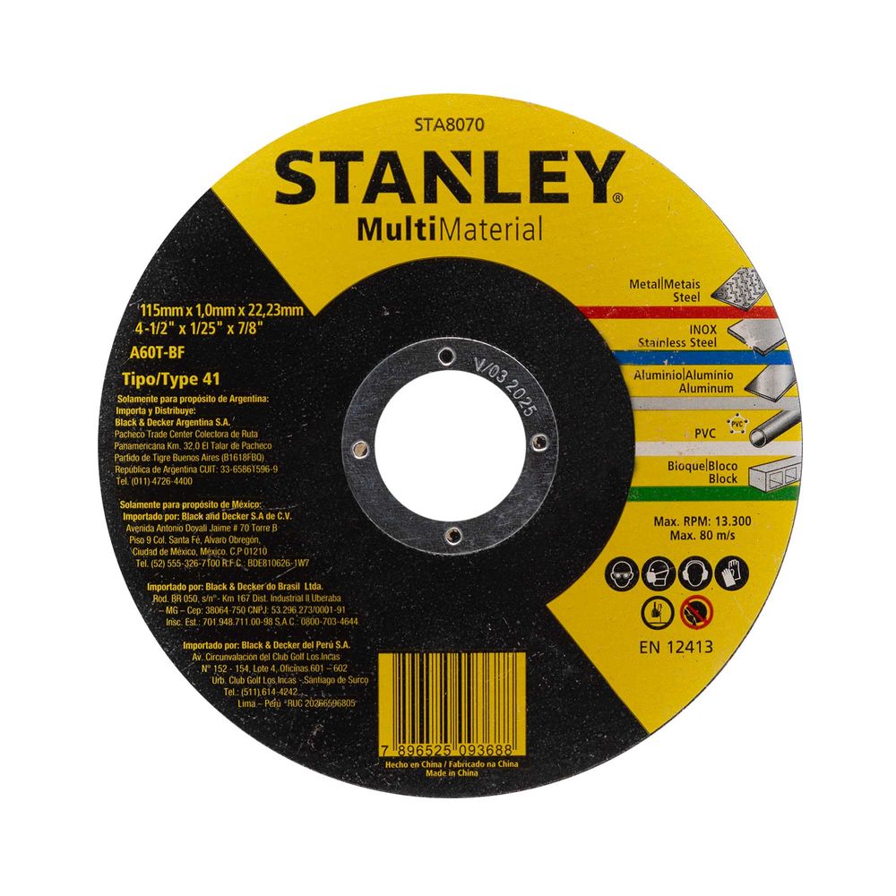 Economia de R$ 1,11O Disco Abrasivo de Corte Stanley Multi 4 1/2 Pol é ideal para cortes precisos e rápidos em diferentes materiais, como metais e aços.