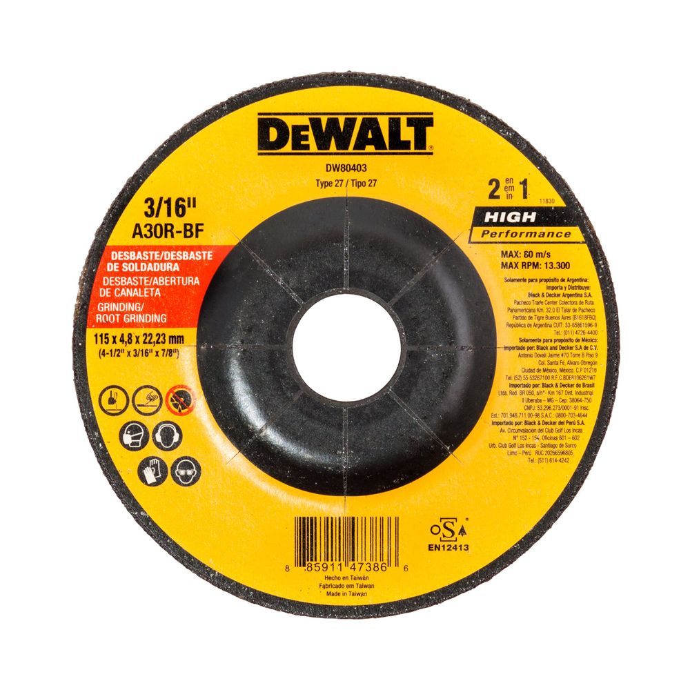 DISCO ABRASIVO DE DESBASTE 4 1/2 POL. DW80403