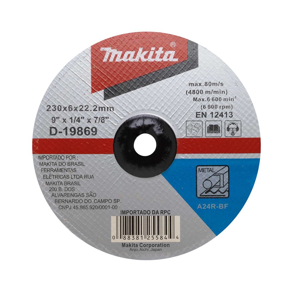 Economia de R$ 5,79O Disco Abrasivo de Desbaste Makita p/ Metal 9 Pol (230 x 6,30mm) é um disco abrasivo de alta qualidade, ideal para trabalhos de desbaste em metais em geral. Com diâmetro de 9 polegadas (230mm) e espessura de 6,30mm, oferece bom desempenho para uso profissional e doméstico.