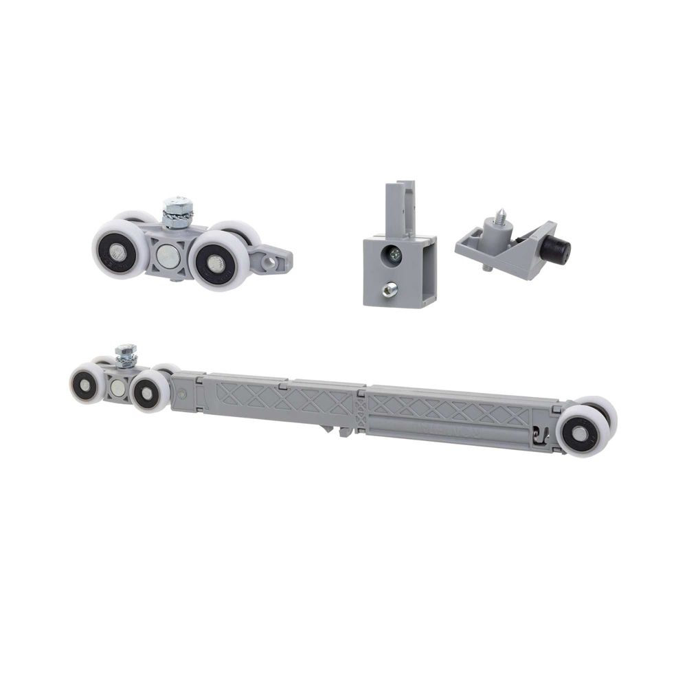 Inclui: Trilho reforçado, rodízios de alta capacidade, suportes ajustáveis e acessórios para instalação completa