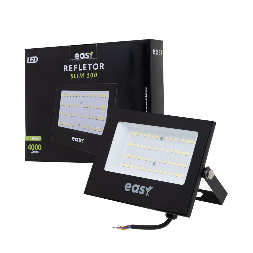 O refletor LED Easy 100W é uma escolha robusta e inteligente para quem busca uma solução de iluminação externa eficiente, durável e econômica, proporcionando segurança e visibilidade com mínima manutenção