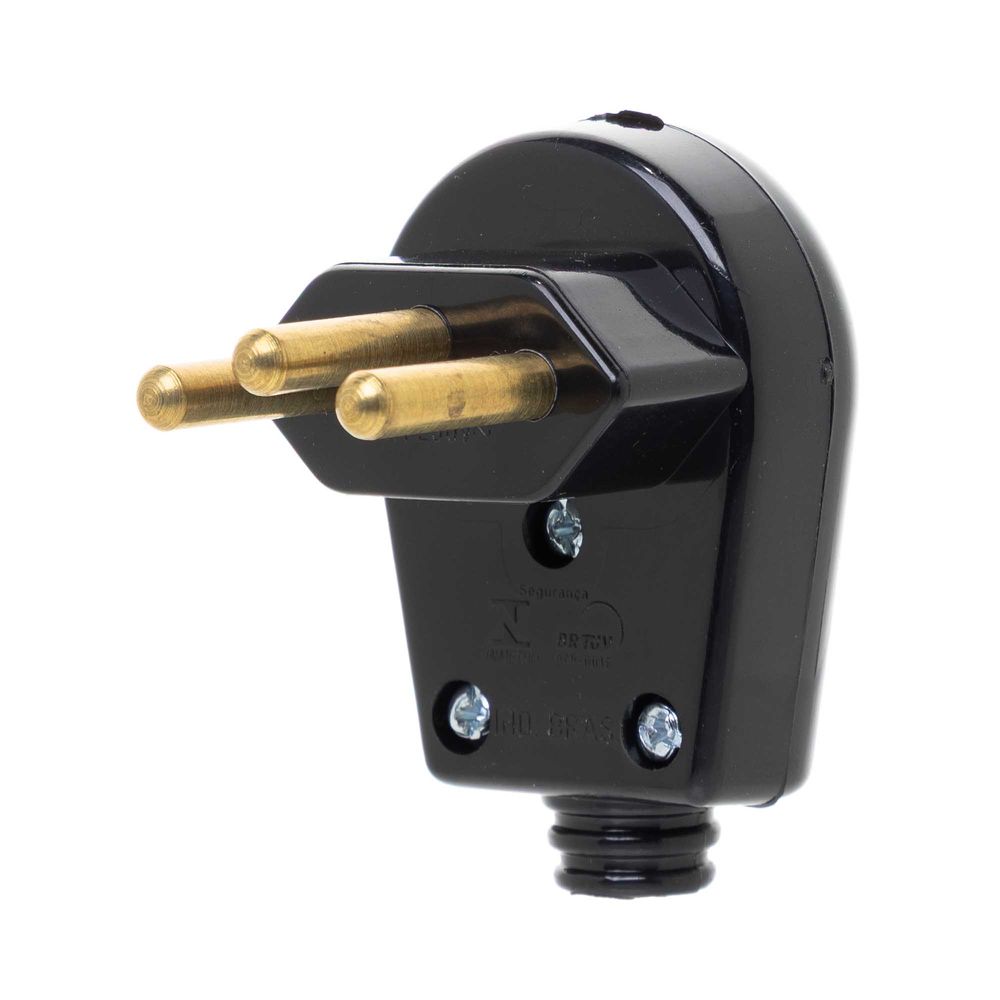Economia de R$ 1,26O Plugue Macho 2P+T 20A Preto da B.Lux é um componente elétrico de alta resistência, projetado para equipamentos que exigem maior potência e segurança