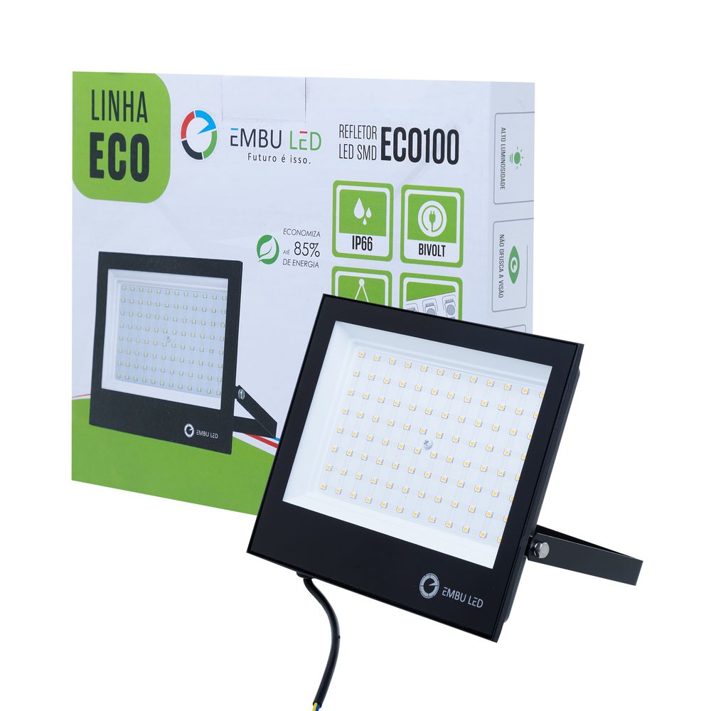Economia de R$ 12,35O projetor LED SMD 100W 3000K bivolt da Embuled é um refletor eficiente e versátil, ideal para áreas externas, com luz branca quente e proteção contra intempéries